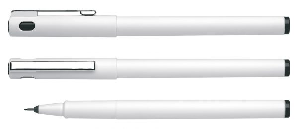 Beyaz opak gövde ve metal klips.